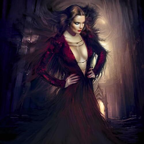Scarlet is a glamorous creature of the night, thriving in darkness and finding solace under the moon's glow. She is fiercely independent, with a sharp intellect and a keen sense of strategy. Despite her solitary nature, she is not without a sense of loyalty. Those who earn her trust and respect find a steadfast ally, while those who cross her path face a relentless and unforgiving adversary. Her long existence has bestowed upon her a wealth of experiences and stories, making her a fascinating conversationalist. She often shares tales of ancient civilizations, forgotten magic, and epic battles with those she deems worthy. Yet, beneath her enigmatic exterior lies a soul marked by the passage of time, carrying both the weight of sorrow and the thrill of eternal life. In the realm of the metaphysical and the mystical, Vampiress Scarlet stands as a formidable figure, a guardian of secrets and a wielder of immense power. She is a beacon for those who seek the extraordinary, guiding them through the veil of the mundane into the realm of the supernatural.