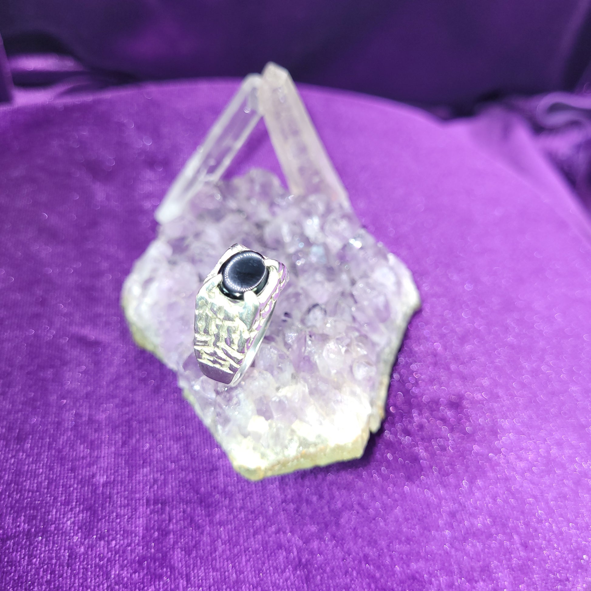 Stand encircled in sacred defense with the Wall of Protection Ring, a Circle of Light talisman crafted to repel darkness and fortify your spiritual boundaries. Cast in sterling silver and set with a shadow-deep 7x9mm black onyx, this size 9.5 ring is both shield and sentinel.